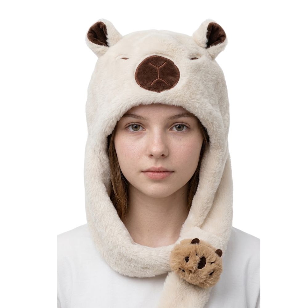 El Gorro Bufanda Peluche Capybara es la opción perfecta para el invierno. Colores: beige, caqui.