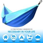 Puede colgar su hamaca duradera para mochileros en el jardín o en el bosque mediante el uso de cuerdas, tiras y mosquetones y ajustar la hamacas a la altura perfecta y el nivel de comodidad según sus preferencias;