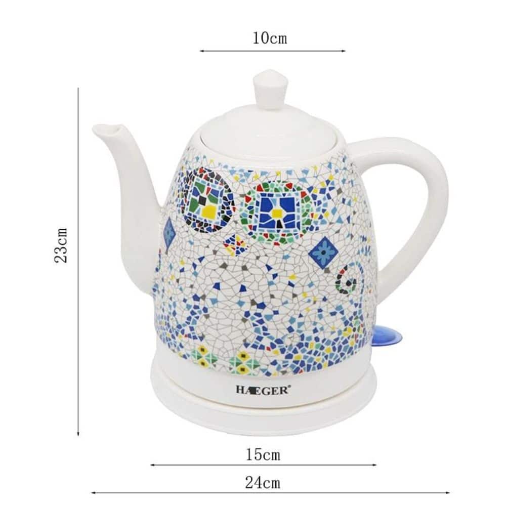 La Jarra Eléctrica de Cerámica SOKANY combina funcionalidad y diseño en una sola pieza. Esta tetera eléctrica de cerámica no solo hierve agua de manera eficiente gracias a su potente motor de 1000W, sino que también añade un toque de elegancia a cualquier cocina con su diseño decorativo de mosaico.
