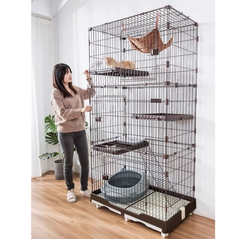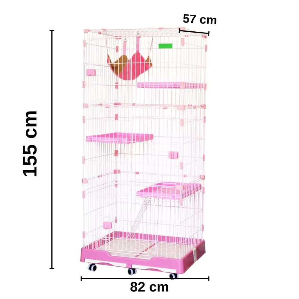La jaula de 3 pisos para gatos con ruedas es perfecta para ofrecerle a tu gato un espacio amplio y confortable donde podrá jugar, descansar y explorar en diferentes niveles. Con unas dimensiones de 82 cm de largo, 57 cm de ancho y 155 cm de altura, esta jaula es lo suficientemente espaciosa para múltiples actividades.