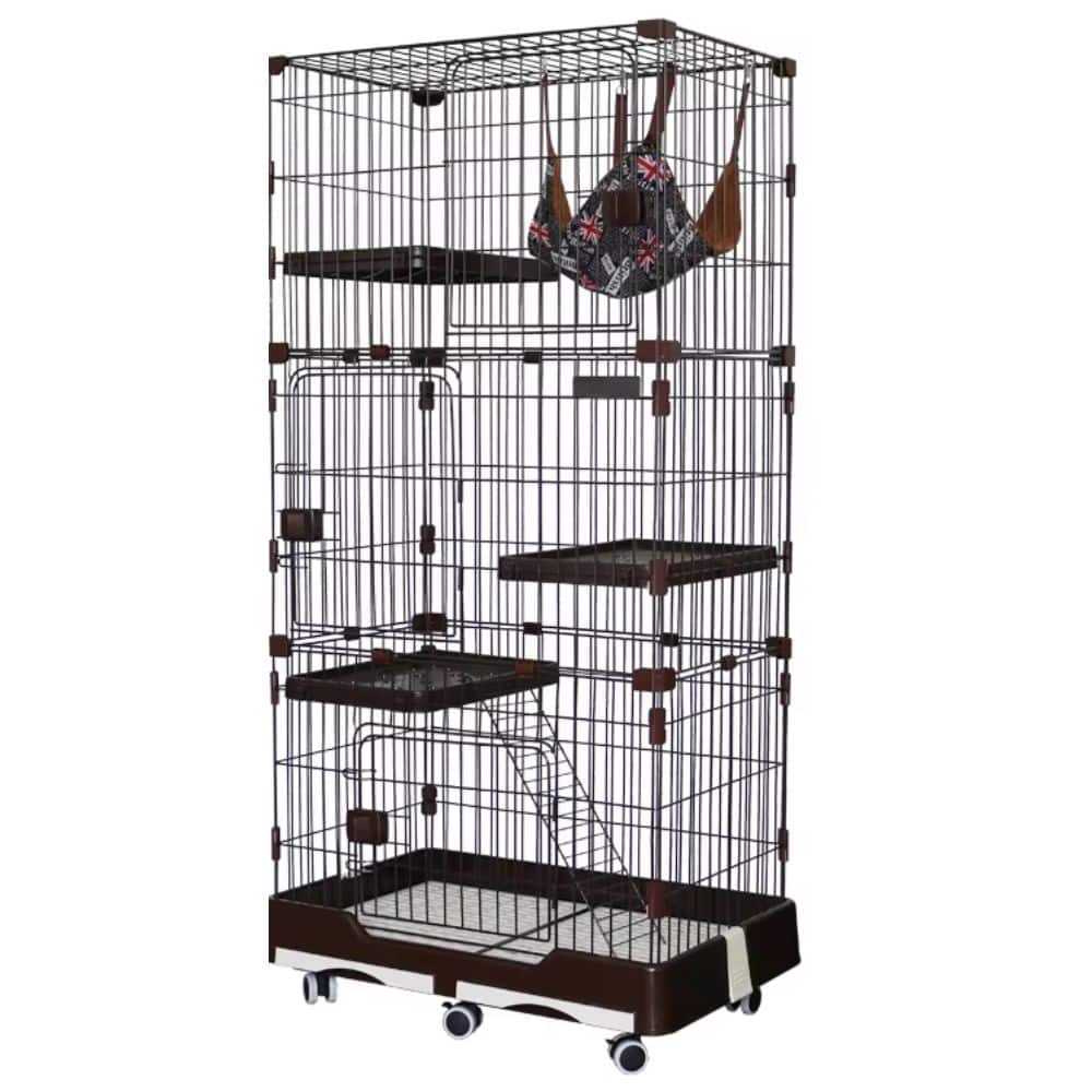 Incluye una cómoda cama colgante, arenero y rampas que facilitan el acceso entre los niveles. Además, gracias a sus ruedas, puedes moverla fácilmente de un lugar a otro en casa. Las puertas están diseñadas para garantizar la seguridad de tu mascota, mientras que el material resistente asegura durabilidad.