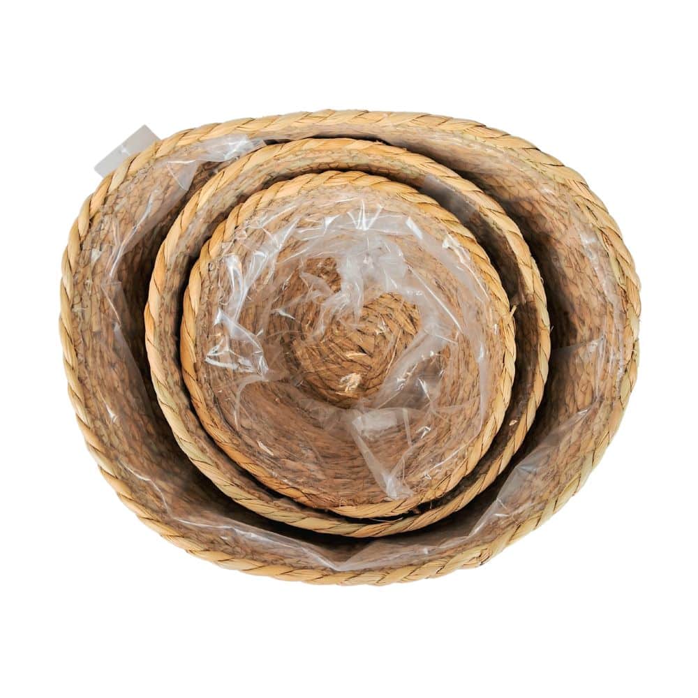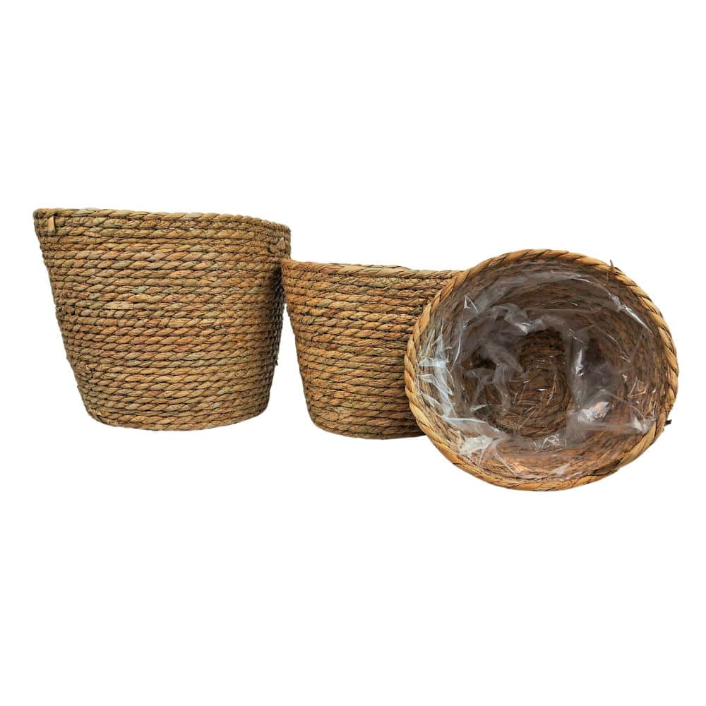 Juego x3 De Cestos De Seagrass Junco Natural Apto Plantas