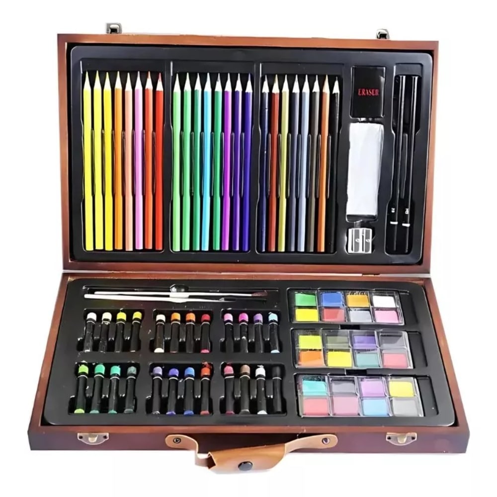 Kit Caja de Arte 85 Piezas Maletin De Madera