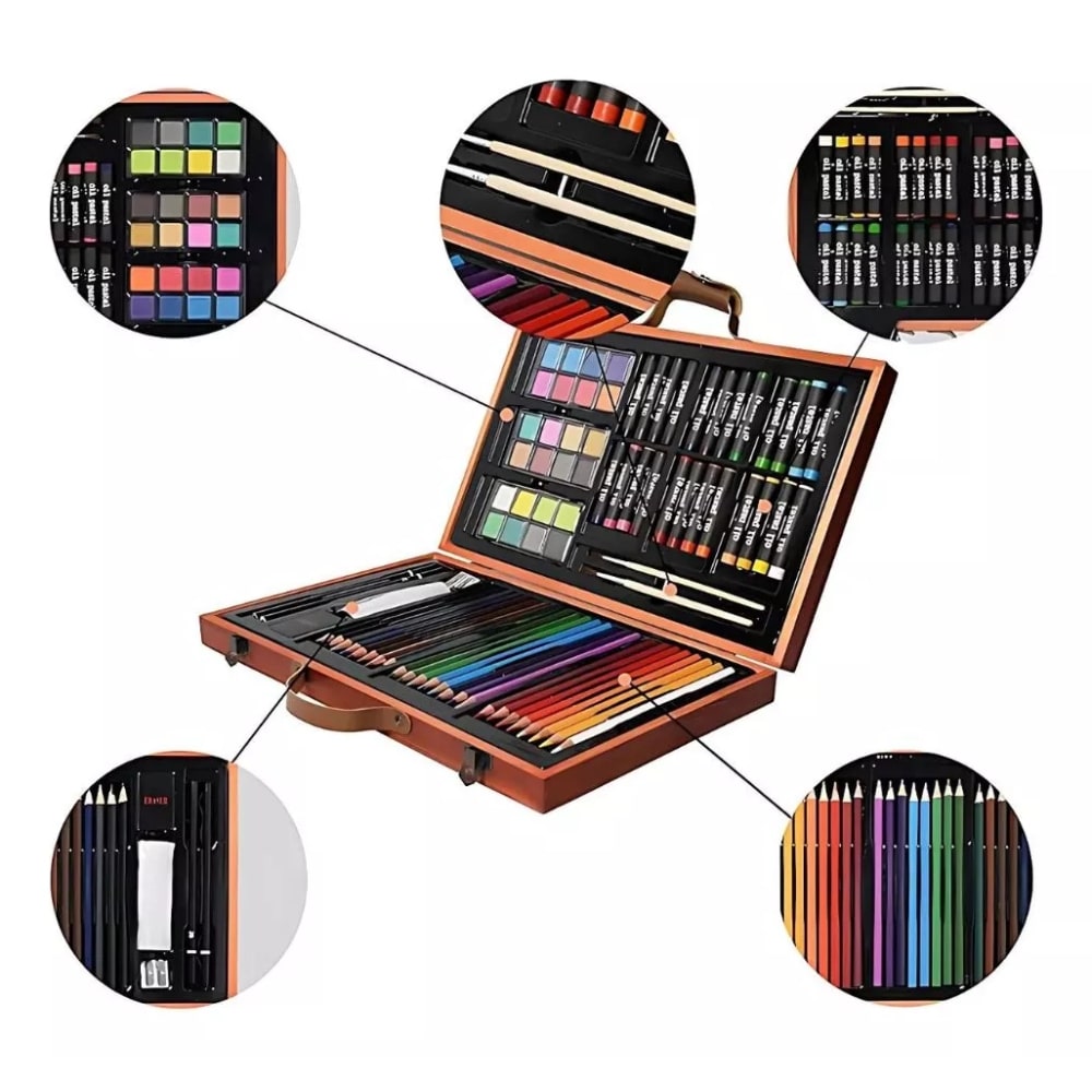 Este kit de arte en maletín de madera es el regalo perfecto para artistas principiantes o avanzados, ofreciendo todo lo necesario para cualquier proyecto creativo en un formato elegante y portátil.