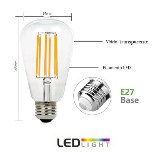 Lampara Luz Led Filamento Vintage 8w Retro Forma Pera