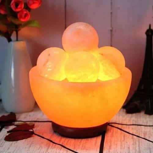 La Lámpara Sal Himalaya Con 5 Bolas Dimmer proporciona una luz suave que mejora el estado de ánimo y purifica el aire.