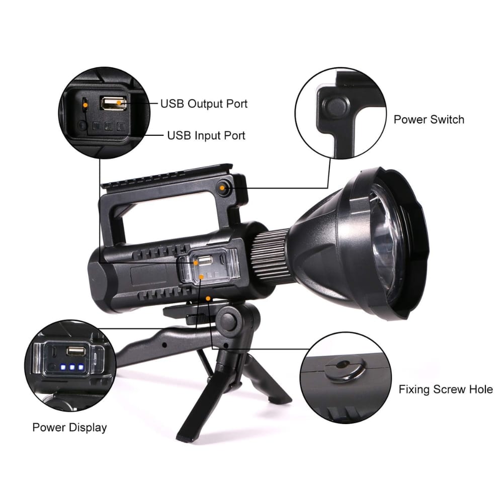 - Trípode portátil: Convierte tu linterna en una potente lámpara de mano o de mesa gracias al trípode incluido.
