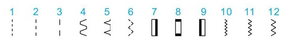 Cuenta con 12 tipos de puntadas que lo apoyan para terminar la costura en zigzag, ojales, cremalleras, costuras, dobladillos, etc. También está equipado con la función Reverse.