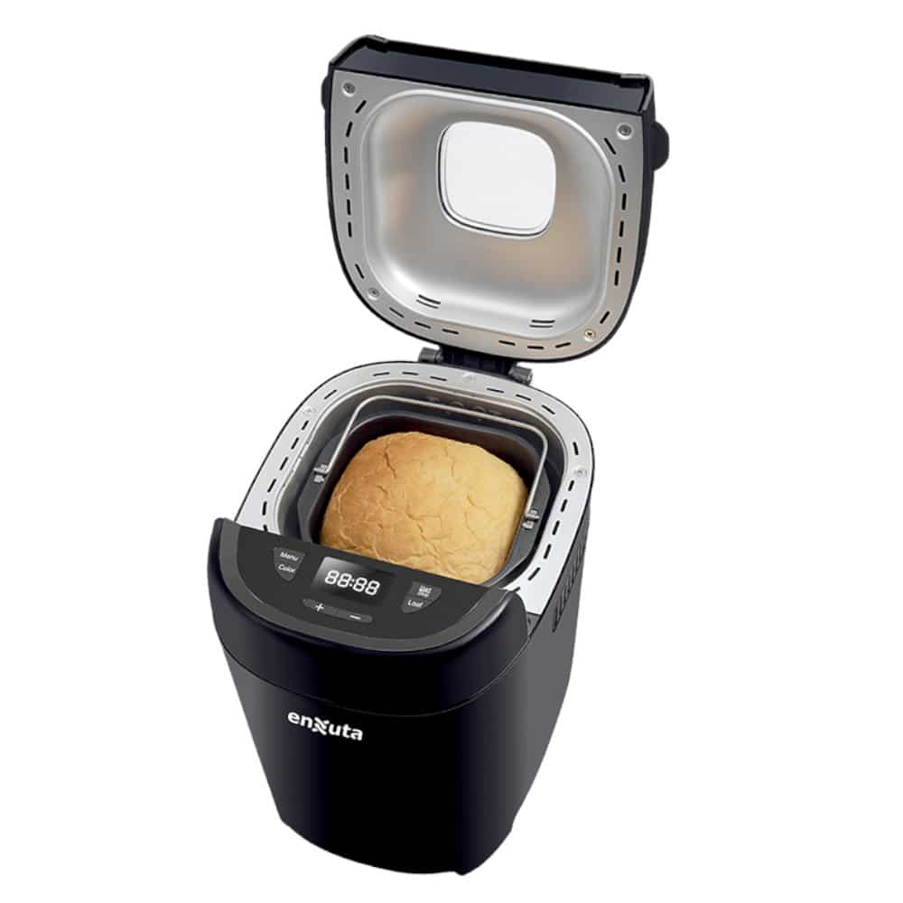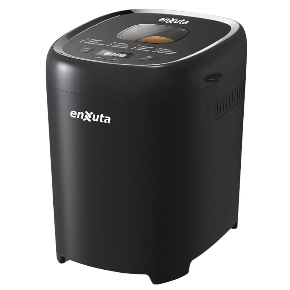 Con un diseño compacto y moderno (medidas: 29,6 cm de ancho x 23,2 cm de profundidad x 29,2 cm de alto), la máquina de pan Enxuta se adapta perfectamente a cualquier cocina, combinando funcionalidad y estilo.