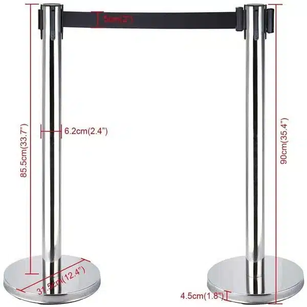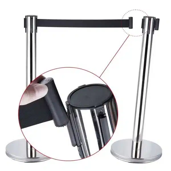 El Set de Barrera con 1 Poste Metálico Cromado de 90 cm de alto y Cinta Color Negro de 2 metros es la solución ideal para delimitar áreas de manera elegante y efectiva. Perfecto para eventos, exhibiciones o control de multitudes.