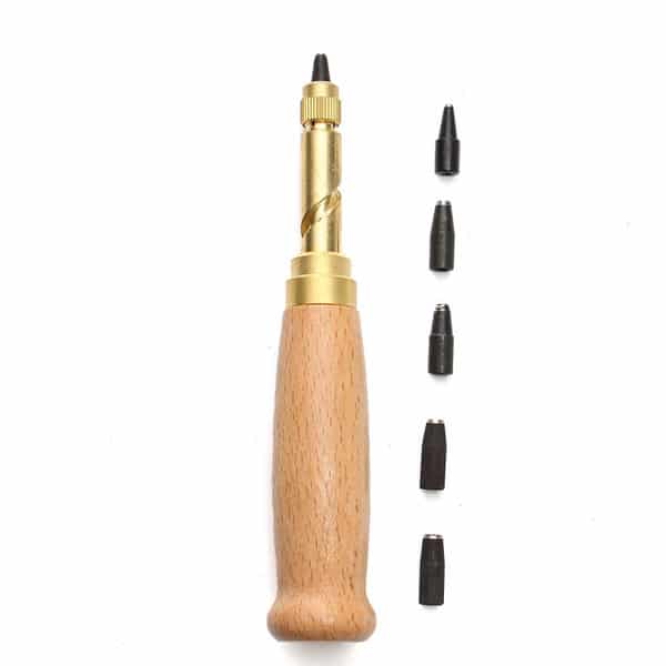 • Contiene punzones de punta para perforaciones limpias y precisas en el cuero.