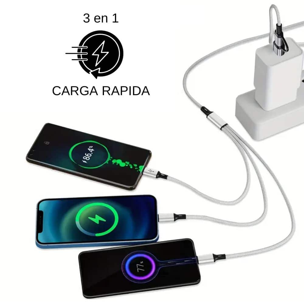 Cable De Carga Rapida 3 En 1 Usb-c Micro Usb Lightining