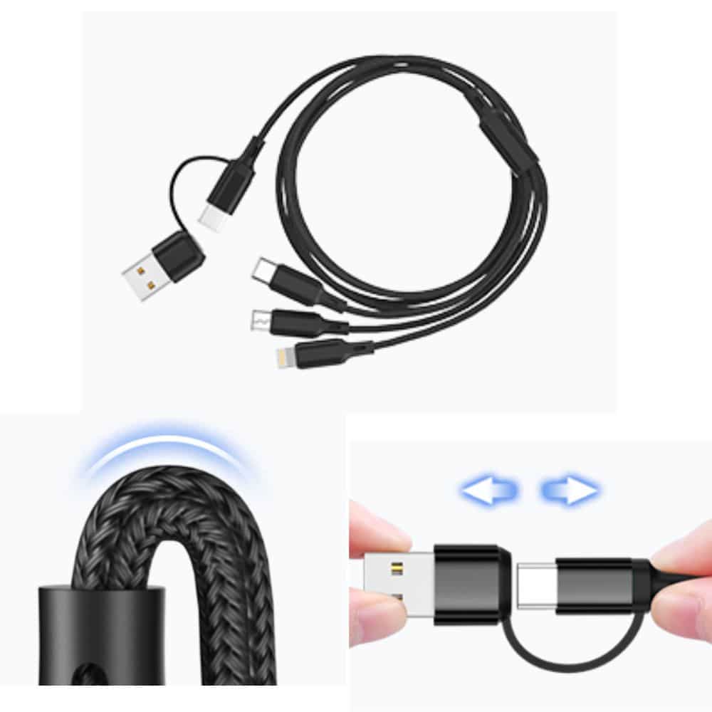 Cable De Carga Rapida 3 En 1 Usb-c Micro Usb Lightining