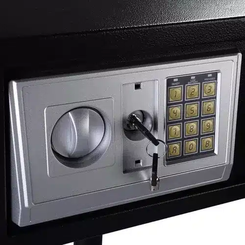 -Múltiples Métodos de Cierre: Este cofre de seguridad cuenta con un mecanismo de cierre versátil que incluye una cerradura con llave y un teclado numérico digital. Puedes elegir el método de cierre que mejor se adapte a tus necesidades.