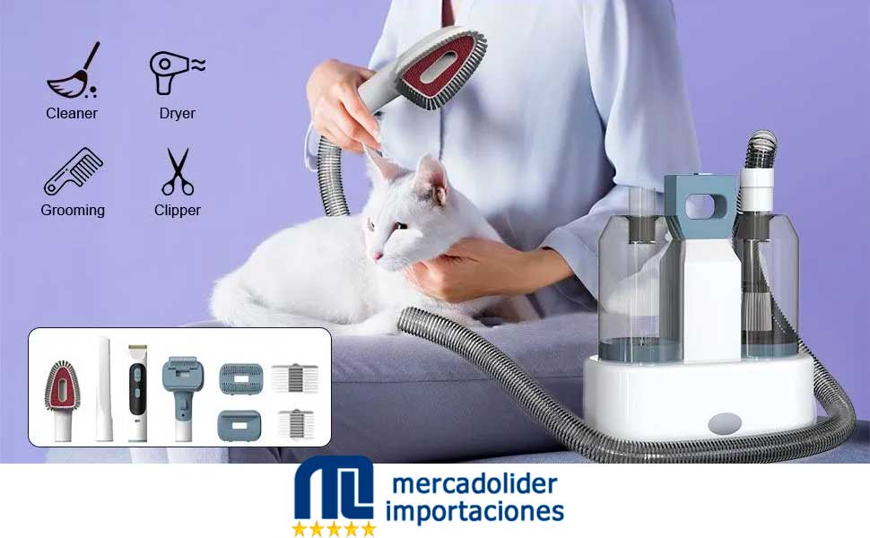 -Multifuncional: Este dispositivo cuenta con cabezales intercambiables que incluyen una cortadora de pelo con diferentes peines de diferentes longitudes, aspiradora común, aspiradora con cepillo y cepillos de deslanado, cardas y rastrillo. Todo lo que necesitas en un solo producto.