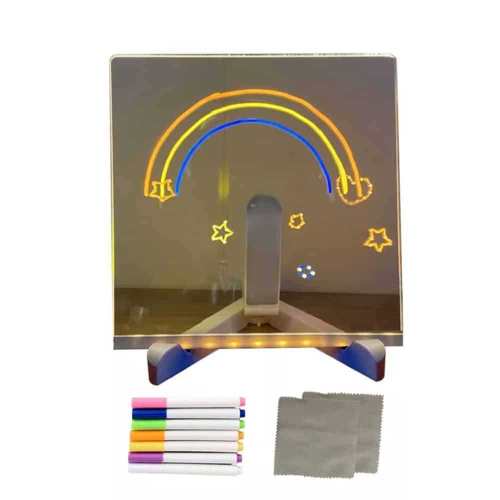 Este innovador dispositivo combina la versatilidad de una pizarra con la modernidad de la tecnología LED para llevar tu creatividad al siguiente nivel.