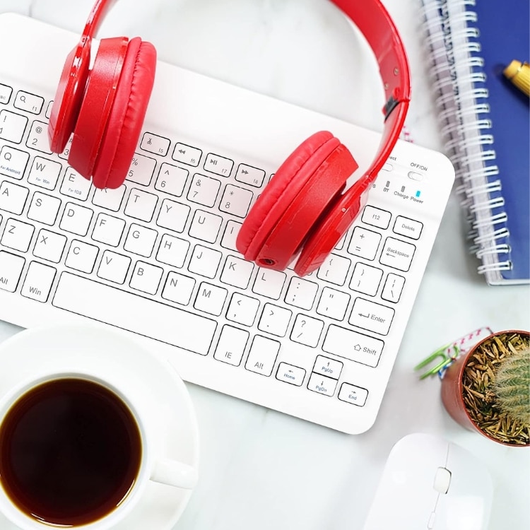 - Sin cable: Utilice la conexión Bluetooth con sus dispositivos móviles, como tabletas y teléfonos móviles. Te brinda más comodidad cuando necesites escribir. Distancia de funcionamiento de hasta 32.8 ft.