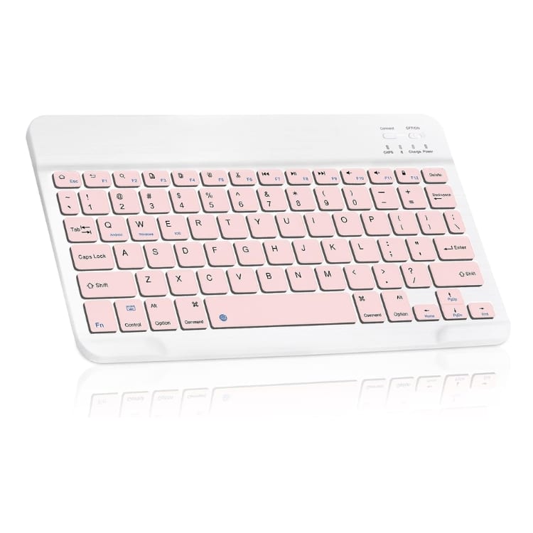 - Sin cable: Utilice la conexión Bluetooth con sus dispositivos móviles, como tabletas y teléfonos móviles. Te brinda más comodidad cuando necesites escribir. Distancia de funcionamiento de hasta 32.8 ft.