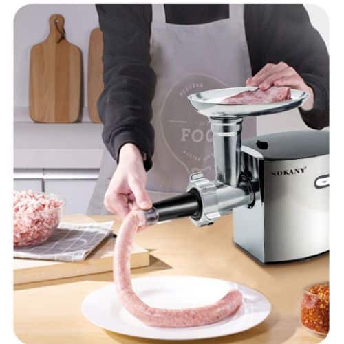 Crea tus propias preparaciones de carne con la Picadora de Carne Eléctrica. Ya sea que estés buscando carne picada para tus platos favoritos o quieras aventurarte en la elaboración de embutidos caseros, esta máquina te brinda las herramientas necesarias para llevar tus habilidades culinarias al siguiente nivel. Con su potencia, versatilidad y facilidad de uso, esta picadora se convierte en una adición esencial a tu cocina, permitiéndote explorar y experimentar con una variedad de recetas hechas en casa.