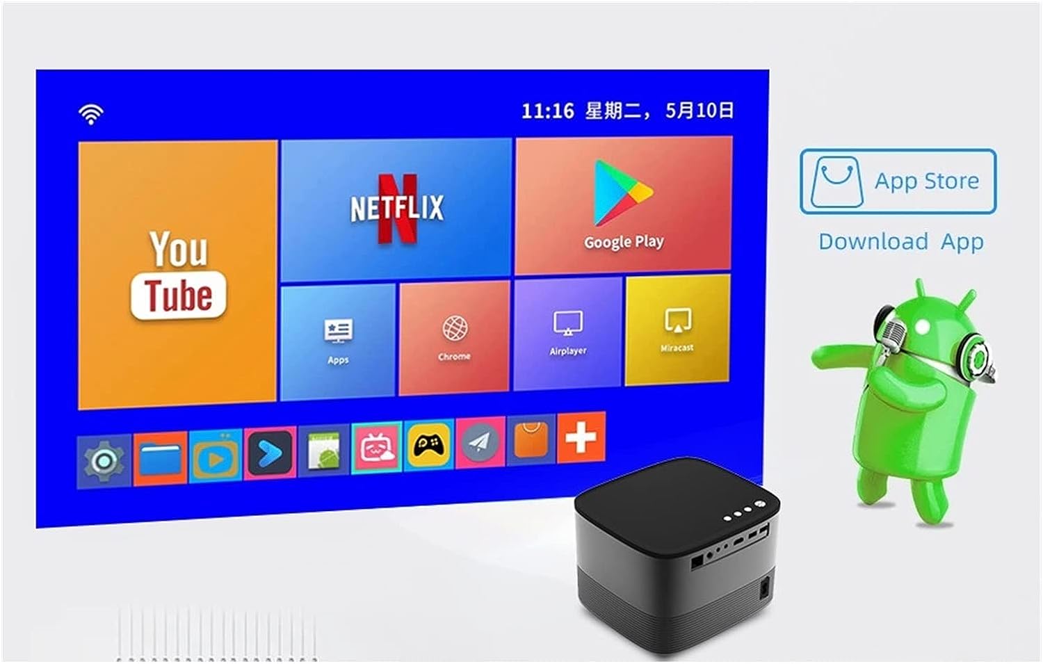 Experiencia cinematográfica en casa con nuestro Proyector LED de Alta Definición! Con Android y Wi-Fi integrados, disfrutarás de una pantalla gigante de hasta 200» con acceso a tus aplicaciones y contenidos favoritos. Calidad de imagen impresionante y comodidad se unen en este proyector versátil.