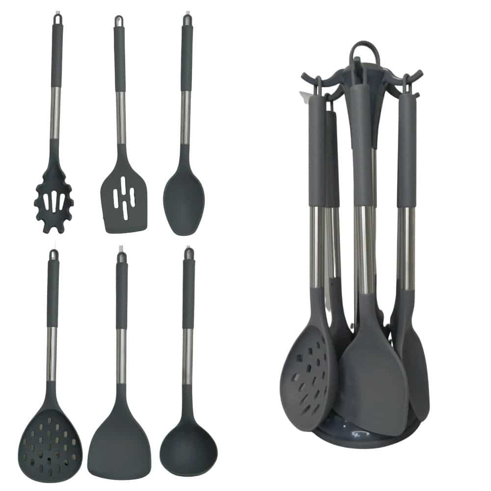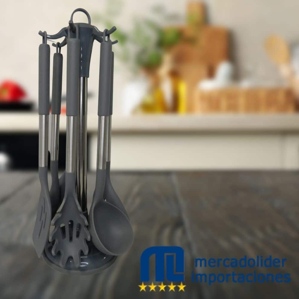 -Soporte Giratorio: El soporte giratorio incluido facilita el acceso a cada espátula y mantiene tu cocina organizada. ¡Nunca más perderás tiempo buscando la espátula adecuada!