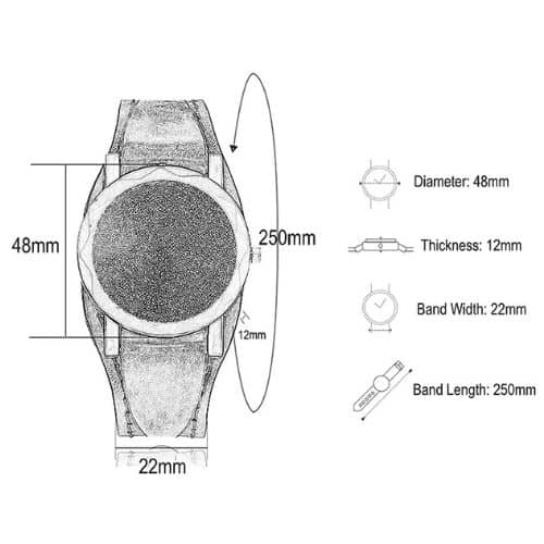 • Dimensiones y Peso: Con una longitud de 22 cm y un ancho de banda de 22mm, este reloj es el accesorio perfecto para muñecas masculinas. Además, su peso ligero de 62g garantiza comodidad durante todo el día.