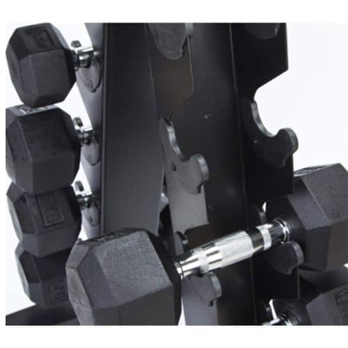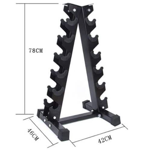 -Organización Práctica: Mantén tu espacio de entrenamiento limpio y organizado al evitar que las mancuernas se dispersen por todo el suelo. Este soporte te permite tener un acceso rápido y sencillo a tus pesas.