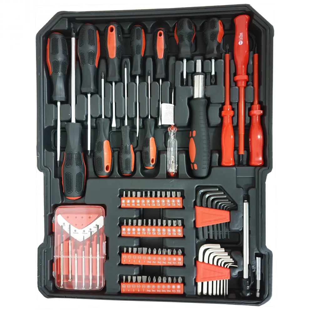 Todas tus herramientas en un solo lugar con nuestra Valija Caja de Herramientas. Incluye 187 piezas, ruedas y 4 bandejas para facilitar tu trabajo.