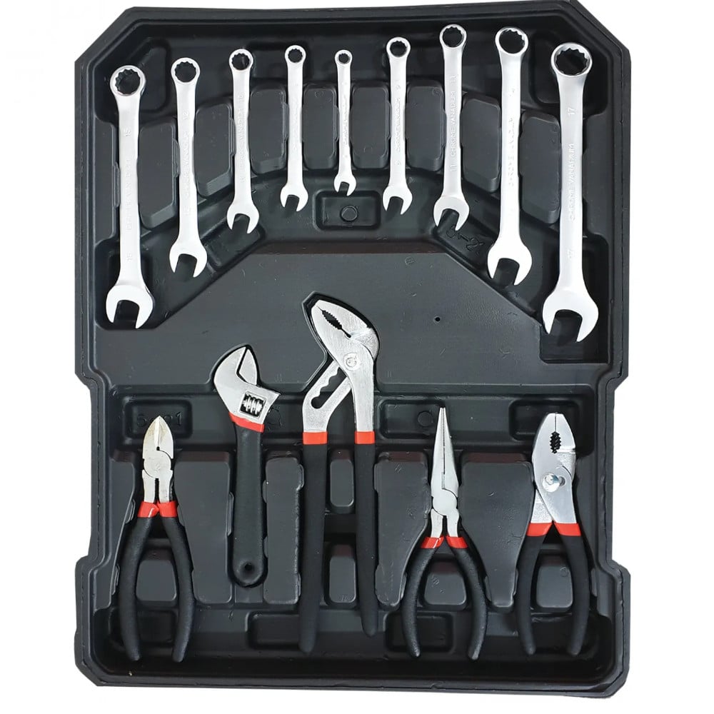 Valija Caja De Herramientas 187 Piezas con Ruedas. Simplifica tu trabajo y mantén todas tus herramientas organizadas. Ideal para proyectos profesionales o reparaciones en casa. Lleva tu eficiencia al siguiente nivel con esta valija completa y conveniente.