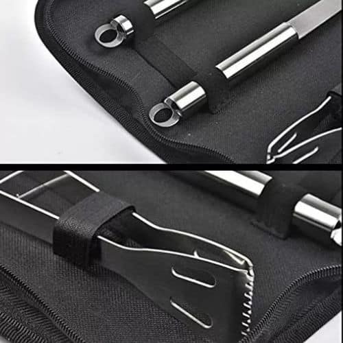 Este set de utensilios de parrilla en acero inoxidable es el regalo perfecto para los amantes de la parrilla y entusiastas de la cocina al aire libre. No importa si estás organizando un asado o planeando una escapada de camping, este conjunto completo de utensilios te brindará la confianza y las herramientas necesarias para cocinar a la parrilla como un profesional.