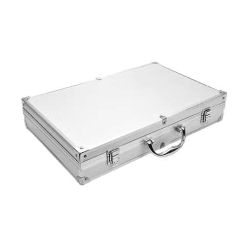 La valija metálica en acero inoxidable no solo almacena tus utensilios de manera segura, sino que también agrega un toque elegante a tu equipo de parrilla.
