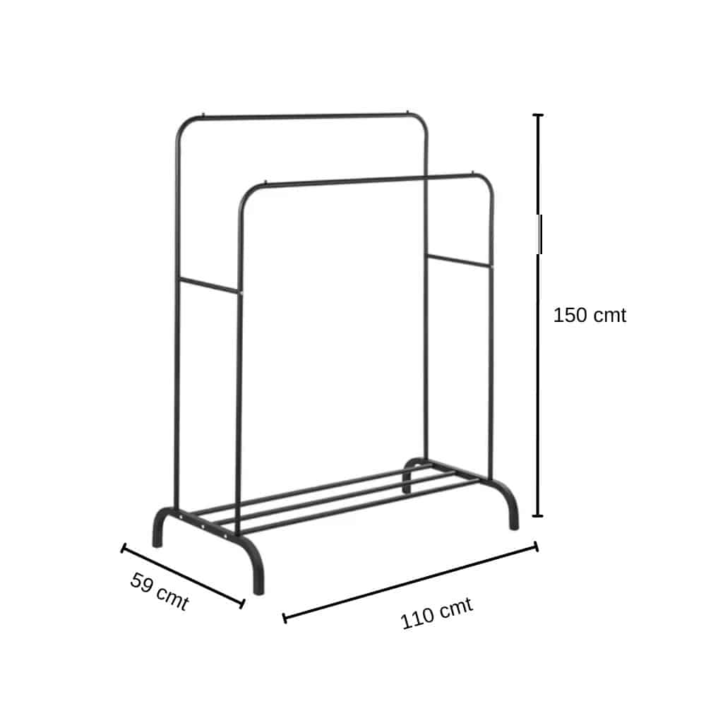 -Doble Barra de Colgar: Este perchero cuenta con dos barras de colgar en diferentes alturas, lo que te permite aprovechar al máximo el espacio vertical y colgar una gran cantidad de ropa, desde abrigos y vestidos hasta pantalones y camisas.