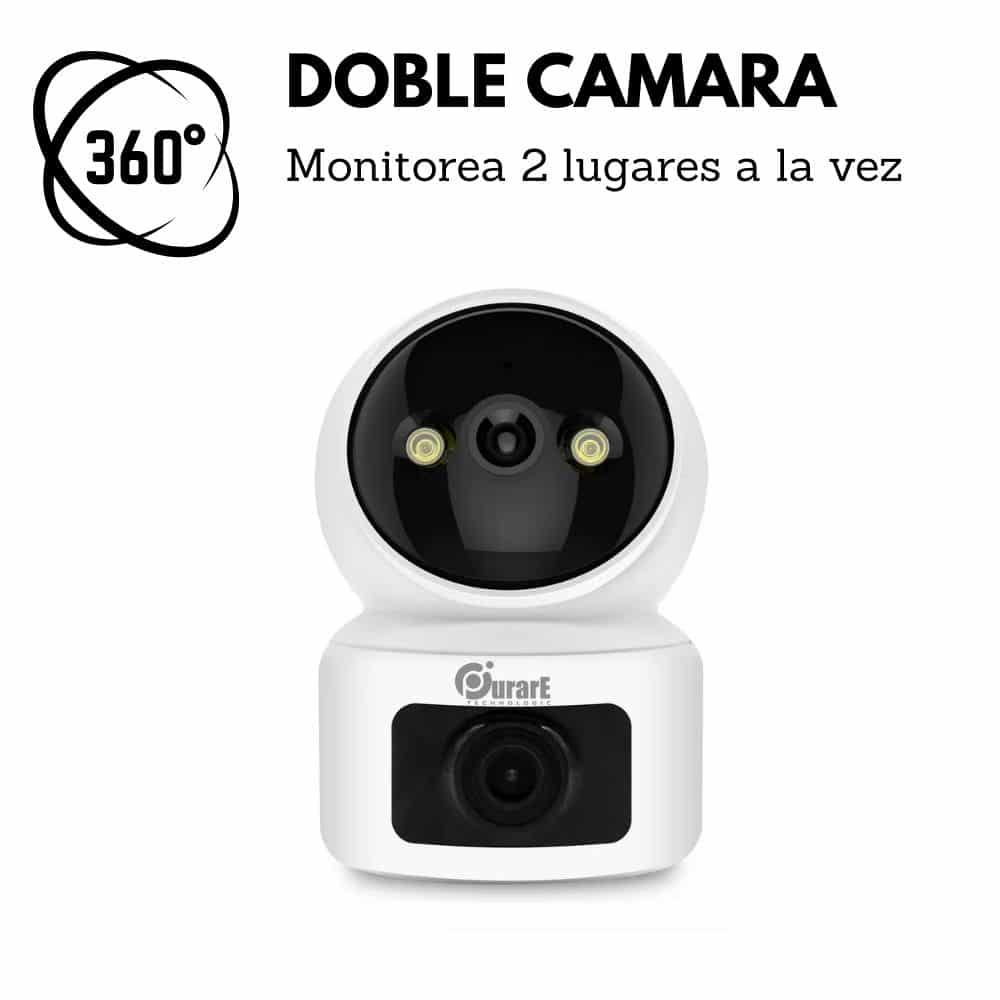 -Doble Lente y Pantalla Dual: Monitorea dos áreas al mismo tiempo sin puntos ciegos. Las dos lentes graban simultáneamente para una cobertura completa.