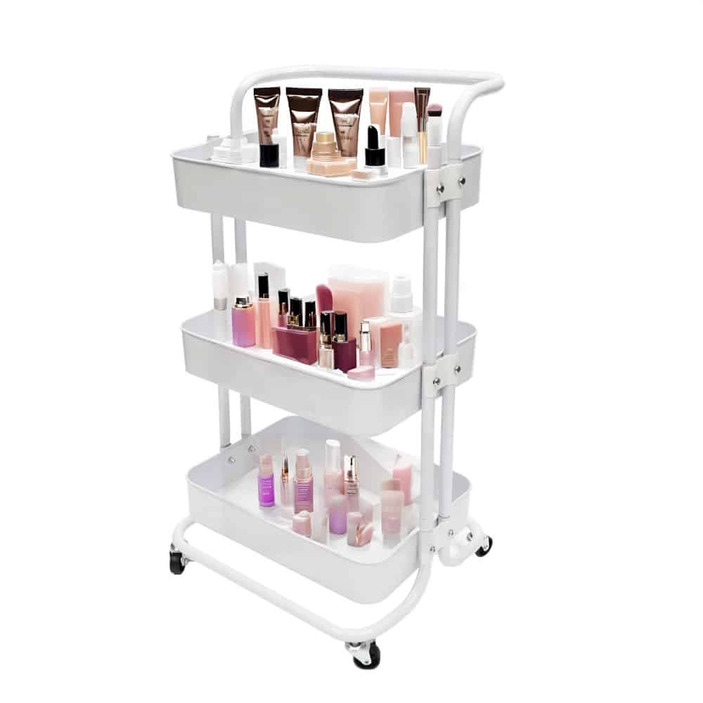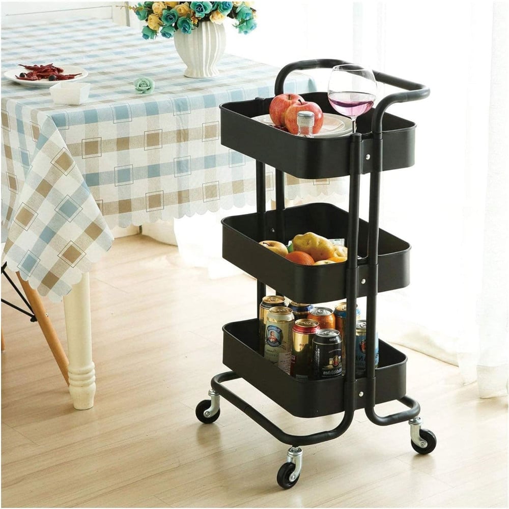El Carrito de 3 Niveles de Metal con Ruedas es un organizador auxiliar versátil que brinda soluciones de almacenamiento prácticas. Ideal para diversos entornos, su diseño compacto y funcional con tres niveles facilita la organización y el transporte de artículos.