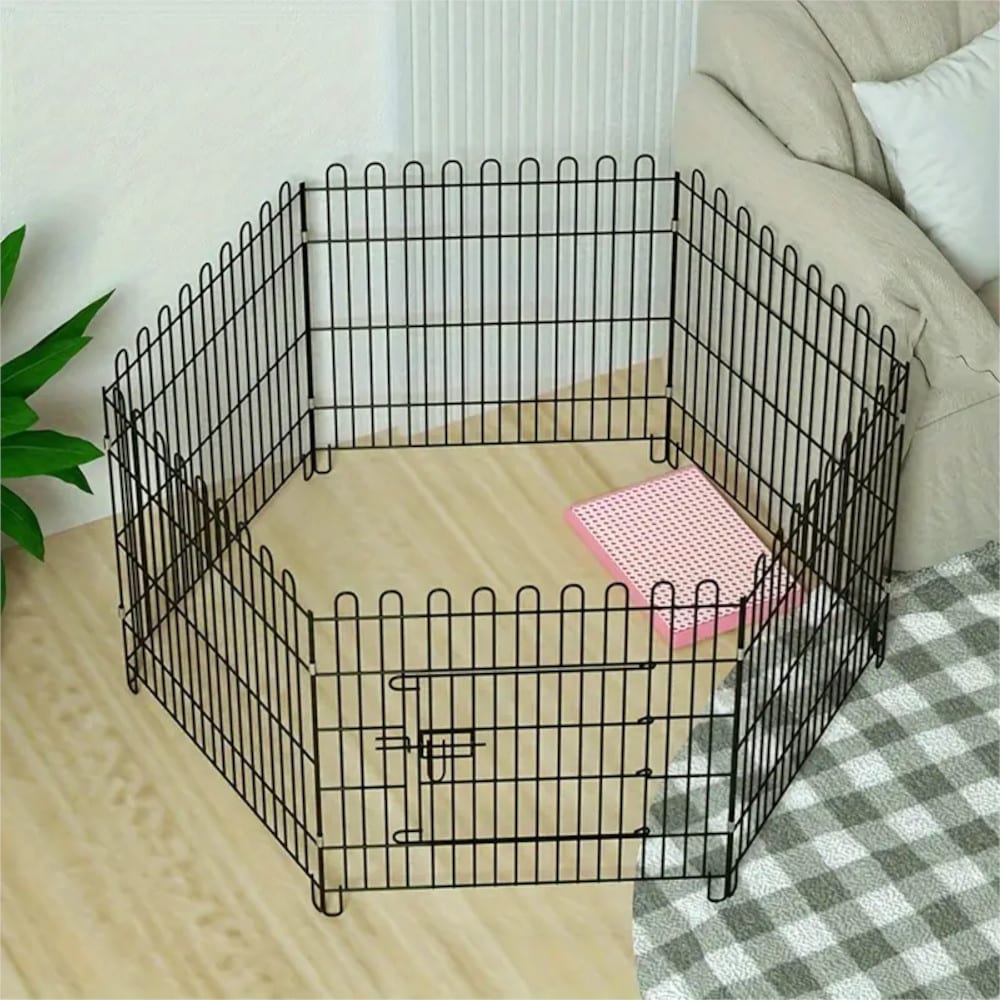 Optimiza el espacio y la seguridad para tu mascota con nuestro Corral para Perros de Metal. Con un diámetro espacioso de 115 cm y una altura de 62 cm, este corral ofrece un ambiente acogedor y seguro para tu perro. Compuesto por 6 paneles robustos, proporciona la flexibilidad de adaptar la forma del corral según tus necesidades.