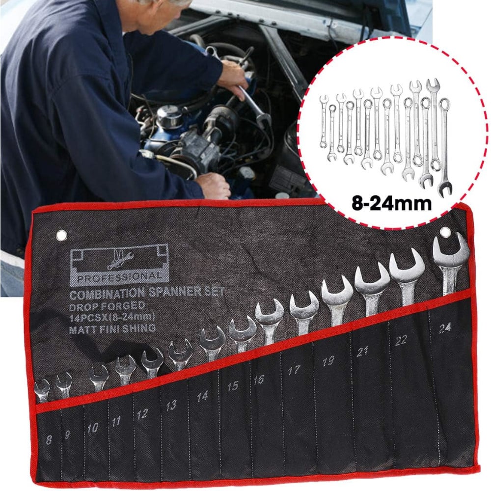 El Juego de Llaves Combinadas de 14 piezas es esencial para cualquier trabajo. Con tamaños que van desde 8 hasta 24 mm, este conjunto ofrece versatilidad y calidad para tus necesidades.