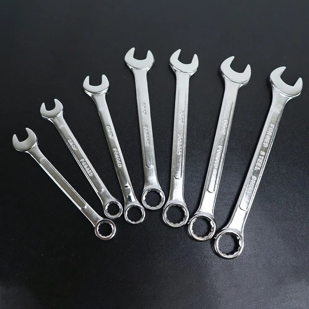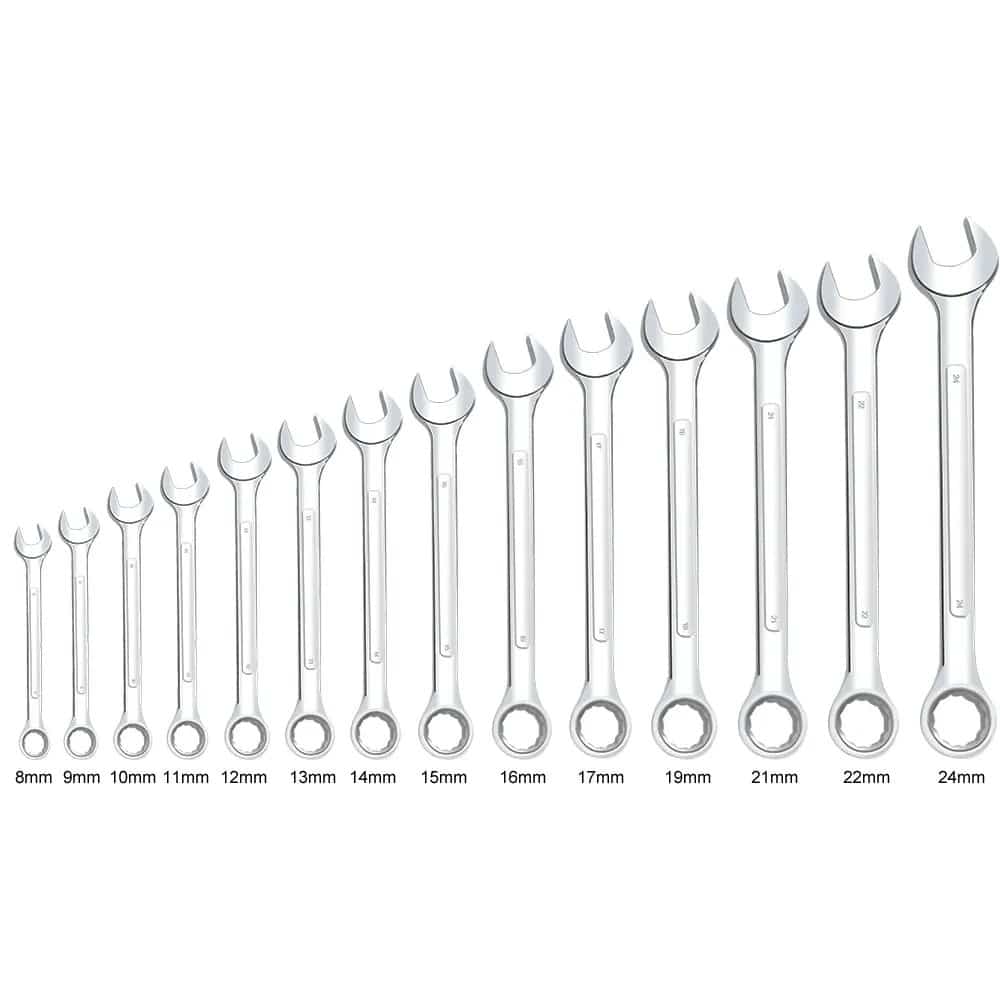 Fabricadas con materiales duraderos y diseñadas para resistir el desgaste, estas llaves combinadas ofrecen un agarre sólido y una eficiente transferencia de fuerza. El juego incluye tamaños estándar utilizados en la mayoría de las aplicaciones mecánicas y de bricolaje, lo que lo convierte en una elección conveniente para profesionales y entusiastas del bricolaje por igual.