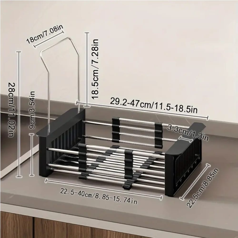 Con medidas de 22.5cm de largo, 28cm de ancho y una altura ajustable de 29-47cm, este escurridor ofrece un espacio amplio y versátil para platos, vasos, cubiertos y utensilios de cocina. Su diseño permite un fácil escurrimiento del agua, manteniendo tu vajilla seca y lista para su uso.
