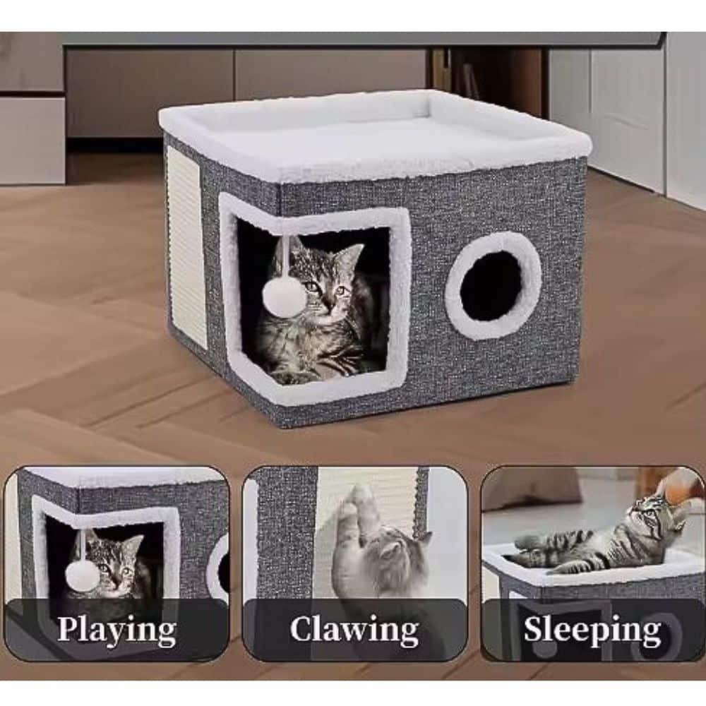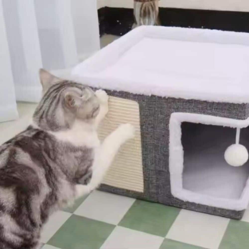 Increible Casa Cueva De Mascotas Cuadrada Para Interiores Con Rascador para que tu gato pase horas en el !