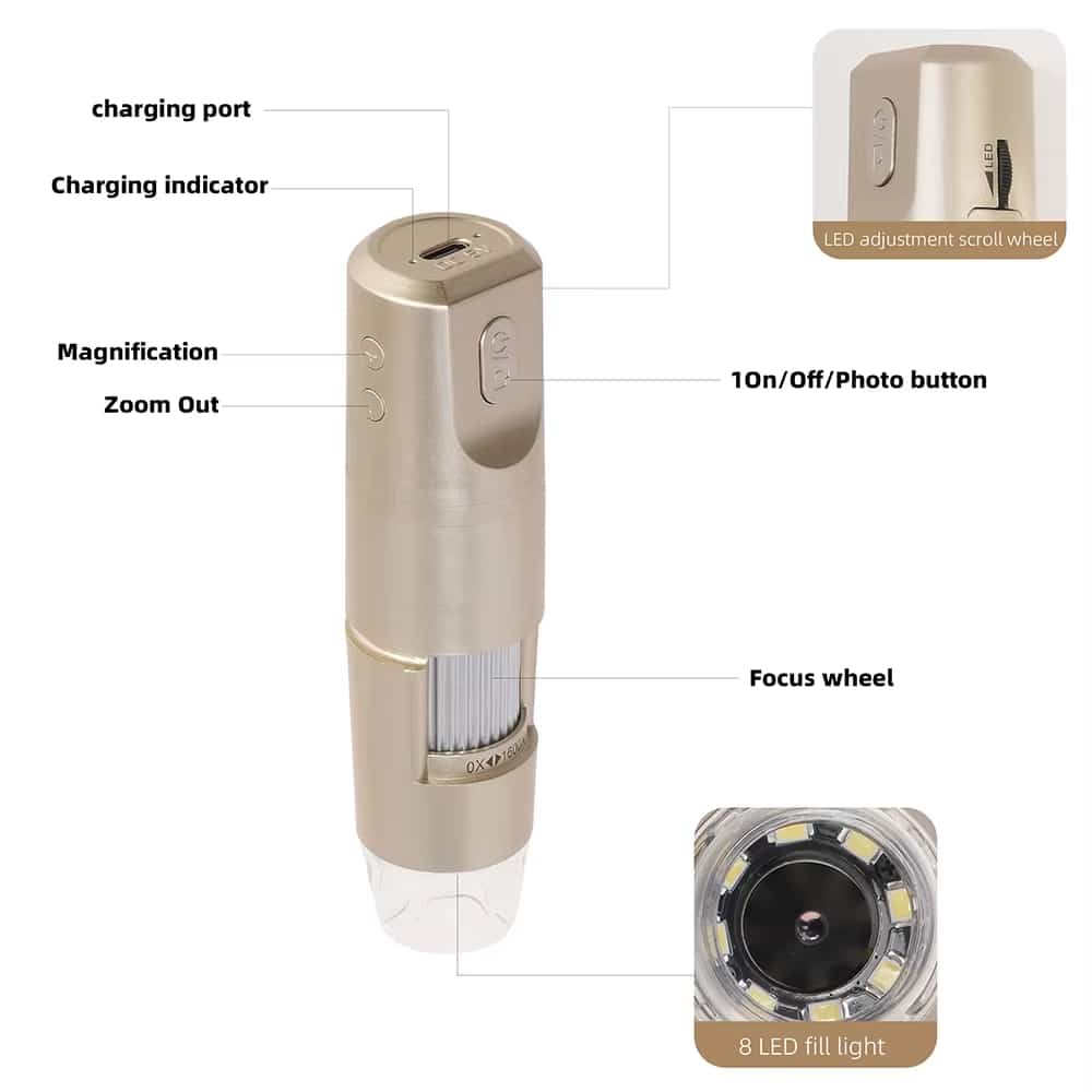 Microscopio Digital WiFi Con App 1600x Con Luz LED