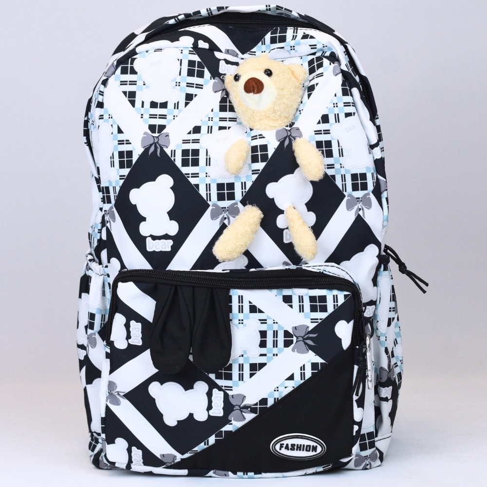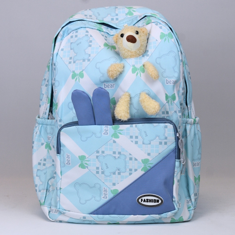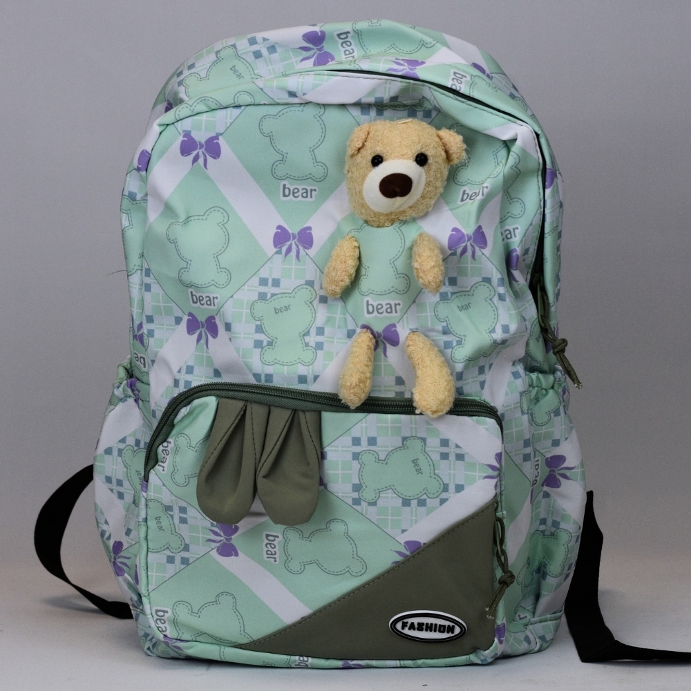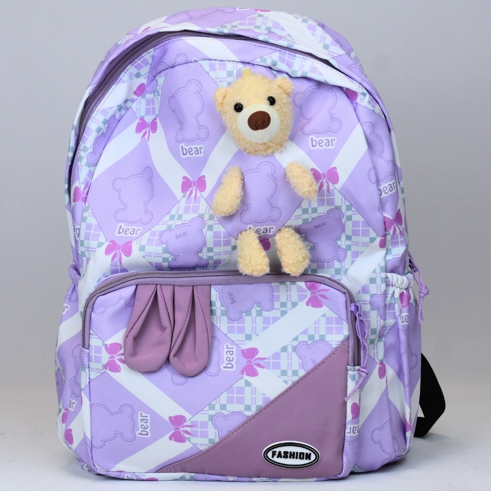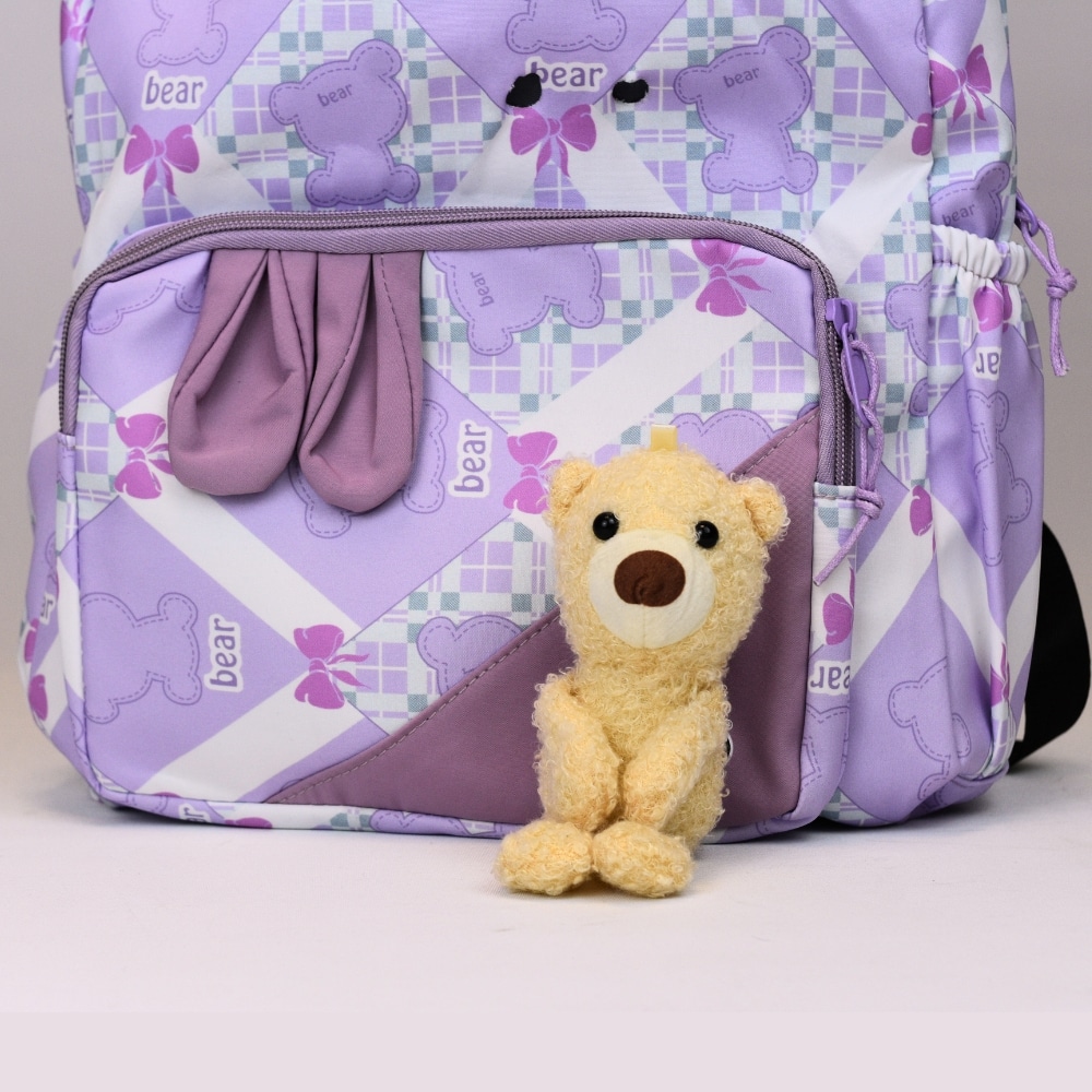 Lo que la hace aún más especial es su adorable peluche desmontable en la parte frontal, que le añade un toque único y divertido. Con medidas de 44 cm de alto, 31 cm de ancho y 5 cm de profundidad, es perfecta para el día a día, la escuela o cualquier salida.