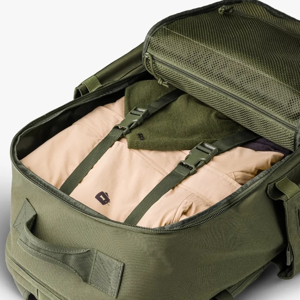 Gracias a su capacidad de 45 litros y su estructura bien organizada, permite llevar todo lo necesario de forma práctica. Cuenta con tres compartimentos principales: uno delantero, uno mediano y otro trasero de gran tamaño. Esto facilita la distribución del equipo, manteniendo el orden y el acceso rápido a lo más importante.