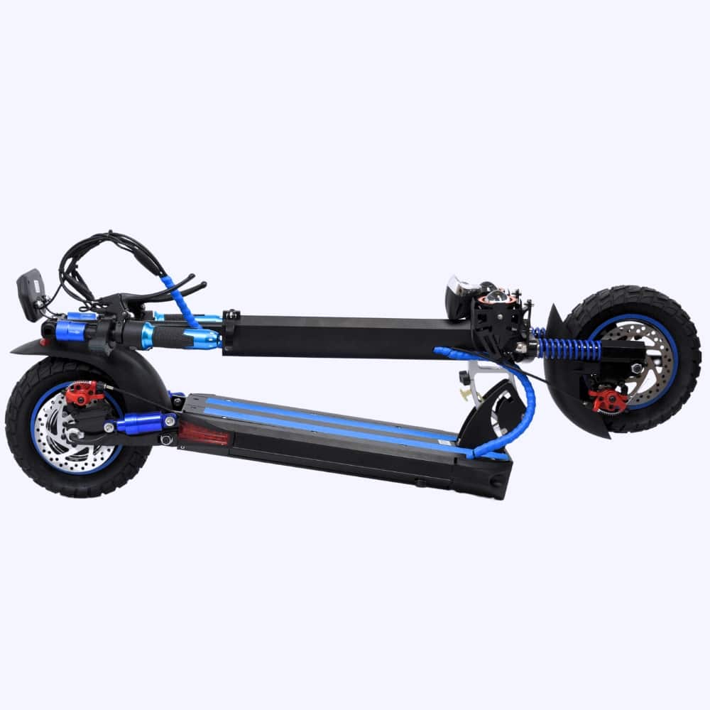 El diseño plegable y ligero (16,5 kg) facilita su transporte y almacenamiento en cualquier lugar. Gracias a sus ruedas de 10 pulgadas y su resistente estructura, soporta hasta 150 kg, adaptándose perfectamente a usuarios de 14 años en adelante.