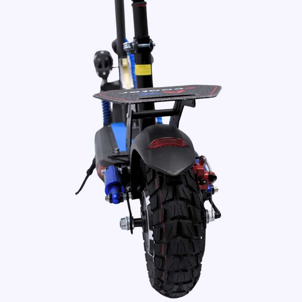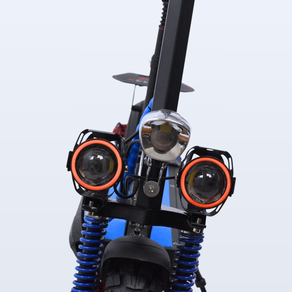 Para garantizar un desplazamiento seguro, el scooter cuenta con frenos de disco, proporcionando un frenado eficiente y confiable en cualquier situación. Además, incorpora luces LED, mejorando la visibilidad en condiciones de poca luz.