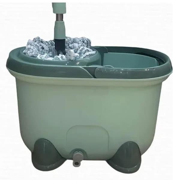 Espectacular lampazo mopa giratorio 360° super absorbente con manija extensible, balde con escurridor en acero inoxidable.