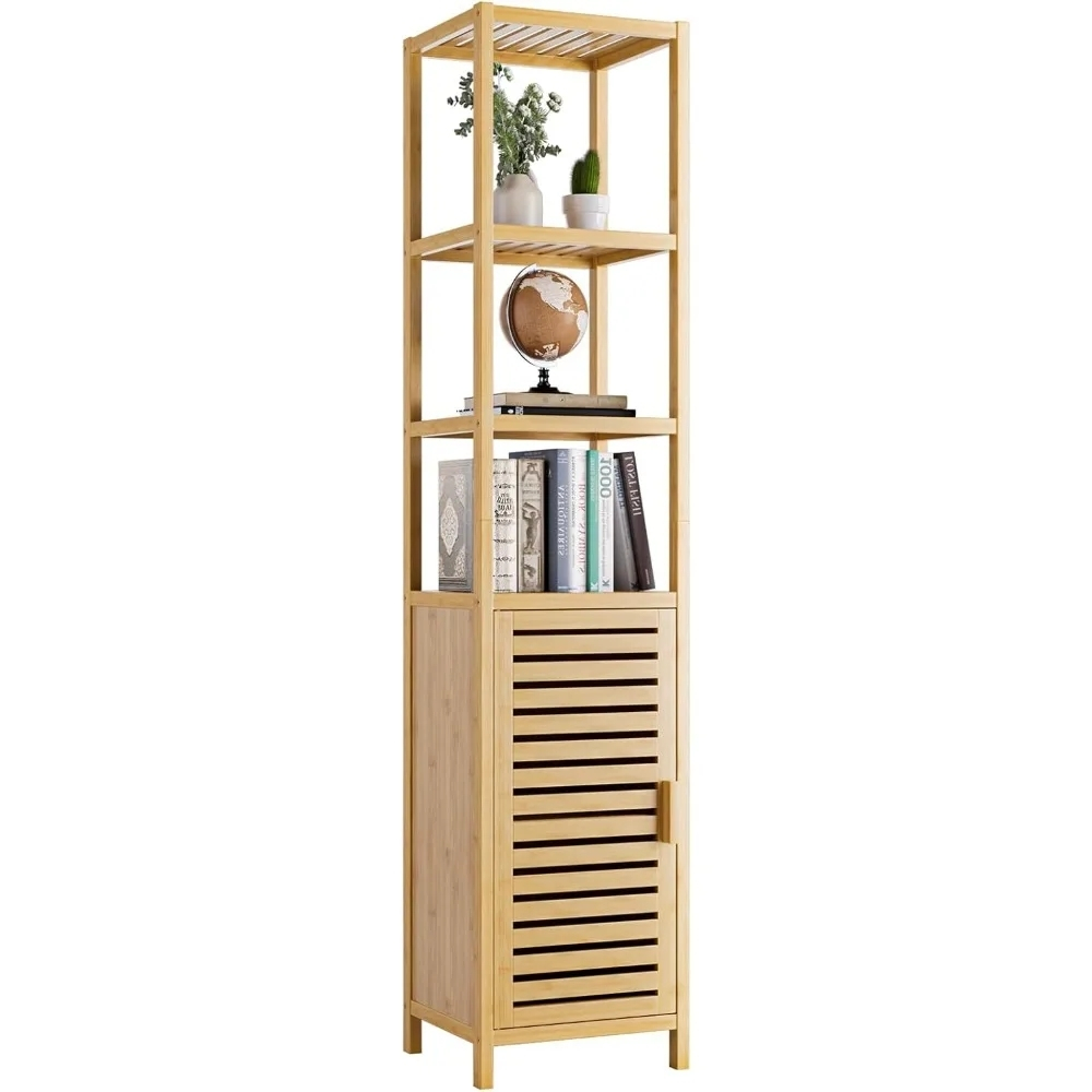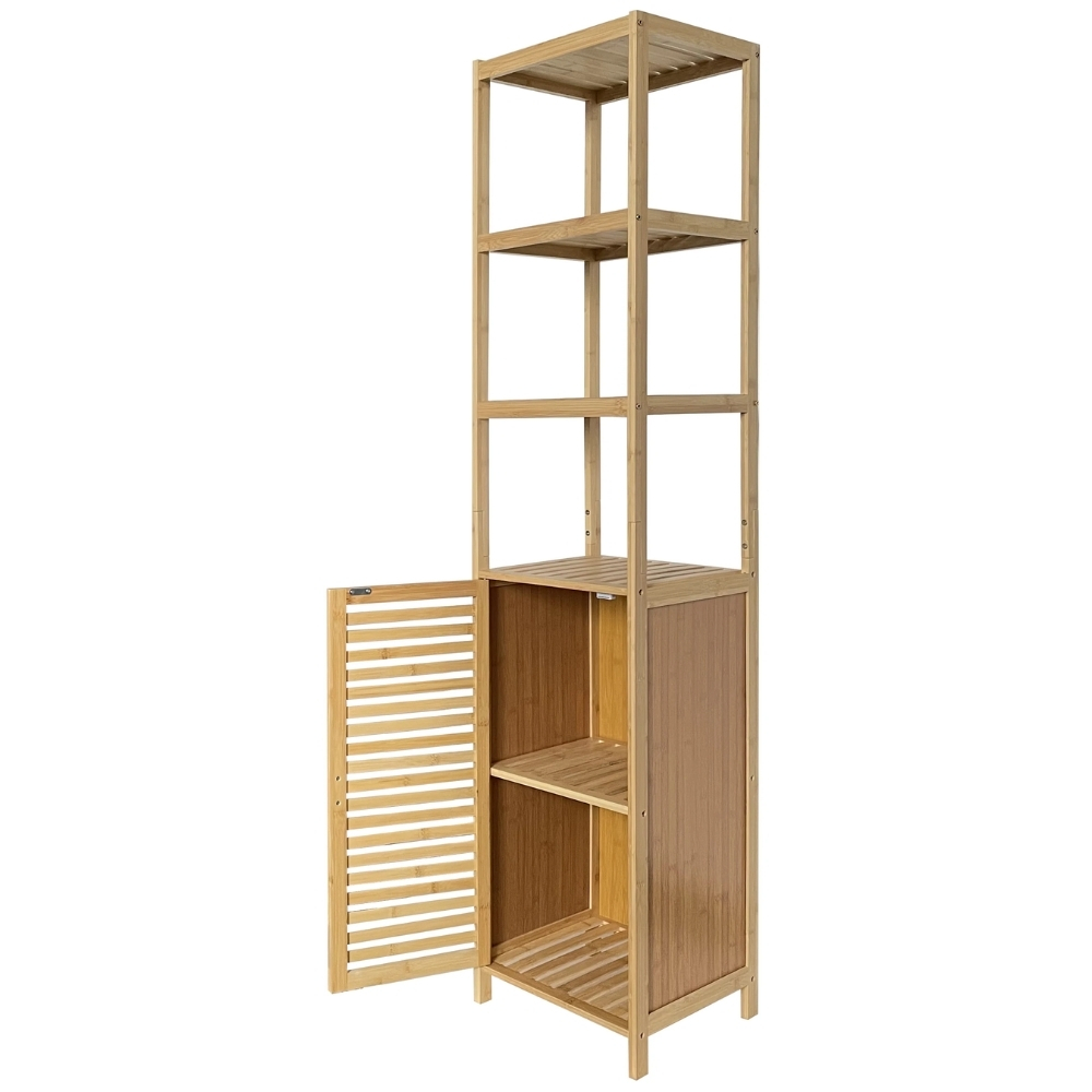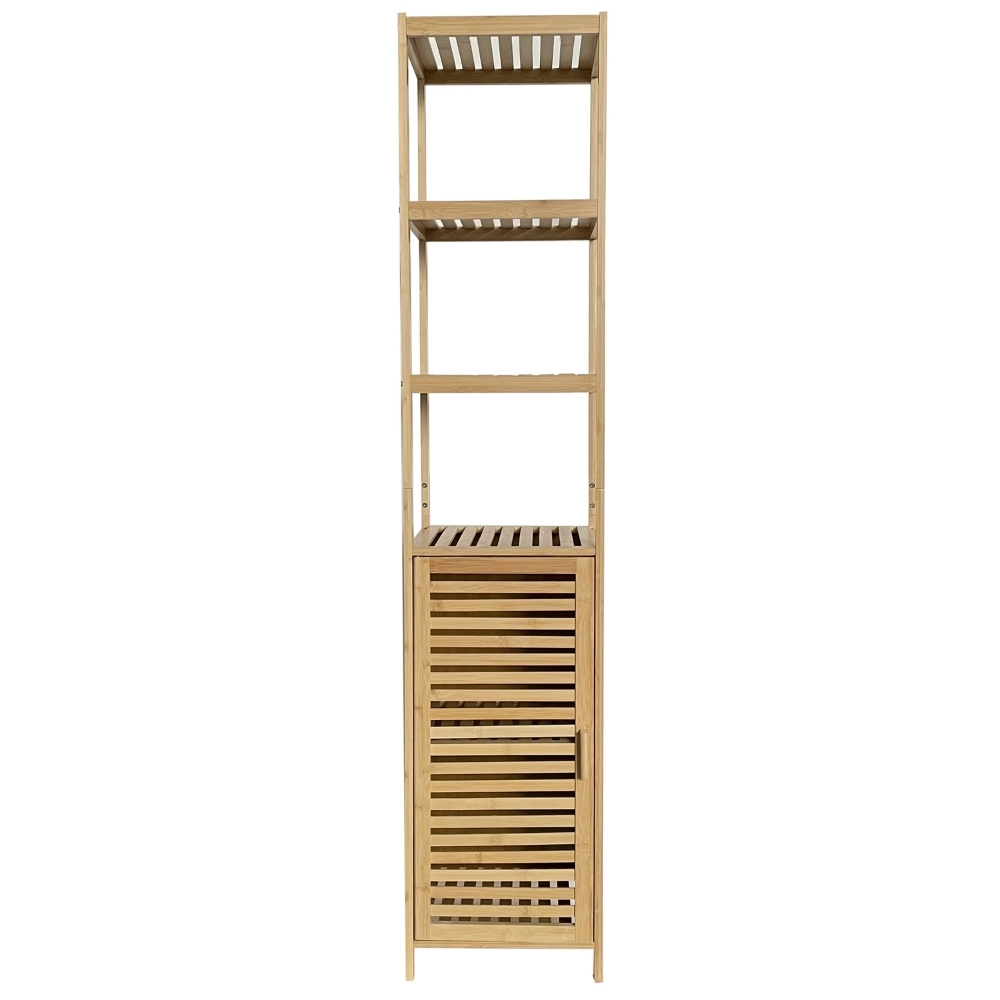 Mueble Estanteria Bambu 169cm con 1 Puerta 3 Estantes Natural ideal para Baño Alacena Organizador Gabinete