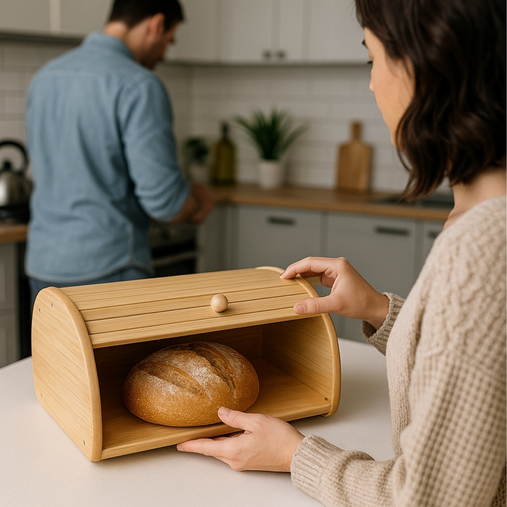 En definitiva, esta panera de bambú es mucho más que un contenedor; es una pieza decorativa que realza tu cocina mientras protege y conserva tus alimentos de manera natural. Su diseño funcional y ecológico la convierte en un accesorio indispensable para quienes valoran el cuidado del planeta y buscan mantener sus alimentos en óptimas condiciones.