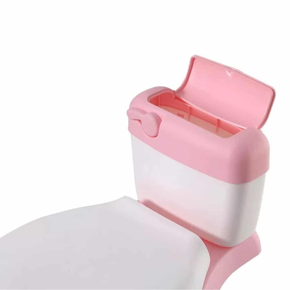 El asiento acolchonado, libre de BPA, ofrece un confort seguro mientras que el water extraíble facilita la limpieza diaria. La tapa con bisagra garantiza un cierre suave y seguro, ideal para los más pequeños de la casa.