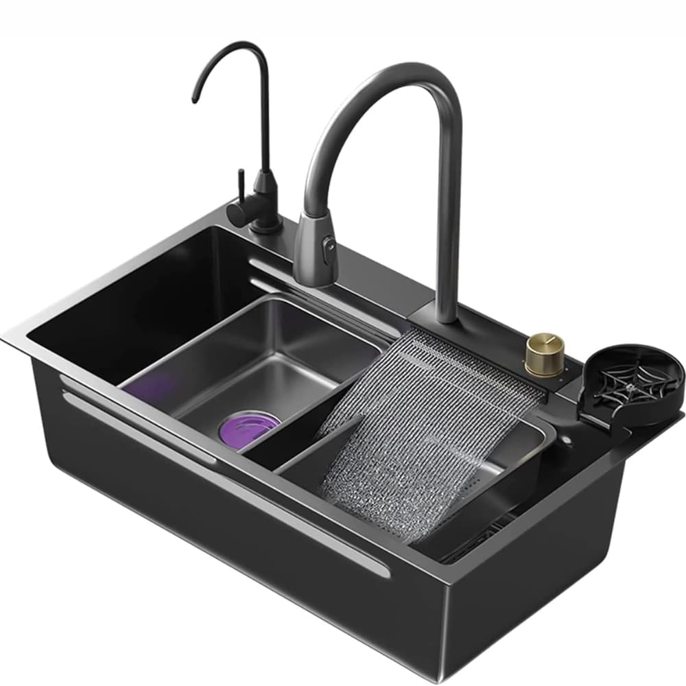 Transforma tu cocina con esta pileta multifunción de acero inoxidable negro, diseñada para combinar estilo, funcionalidad y durabilidad. Con dimensiones totales de 75 x 45 x 19 cm, esta pileta es la elección ideal para optimizar el espacio de tu cocina sin comprometer el diseño.