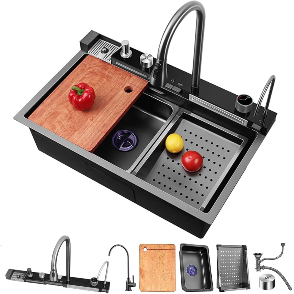 Transforma tu cocina con esta pileta multifuncional de acero inoxidable en color negro, diseñada para combinar elegancia, funcionalidad y durabilidad. Con un diseño que optimiza el espacio, incluye accesorios de alta calidad para facilitar las tareas diarias.